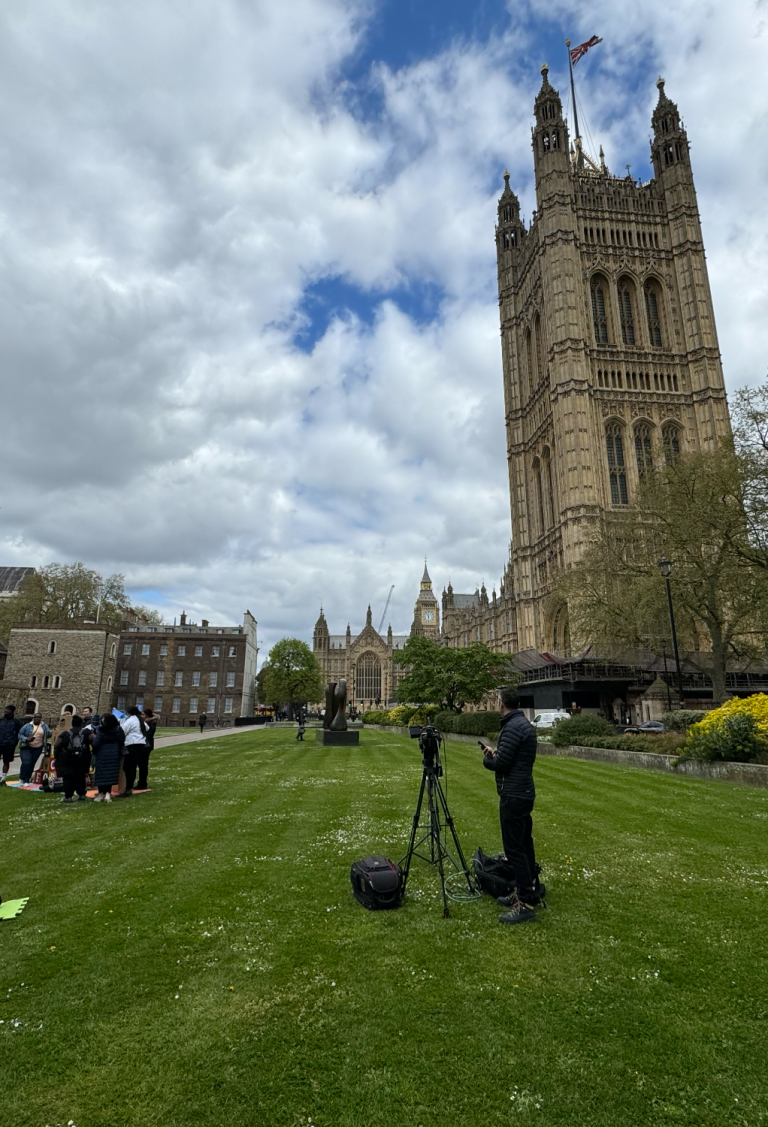 • Starting at Abingdon Street Gardens with Houses of Parliament in the background.