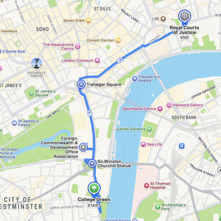 • Royal Courts of Justice, The tour ends here the start of Fleet St and The City of London. There are many great Pubs, Gin Distillery, coffee places and places of interest here.