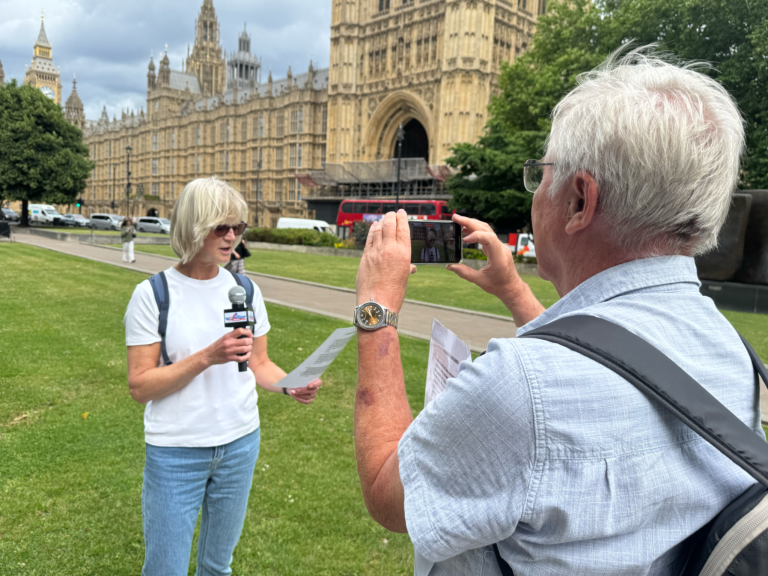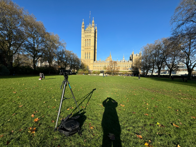 • Starting at Abingdon Street Gardens with Houses of Parliament in the background.